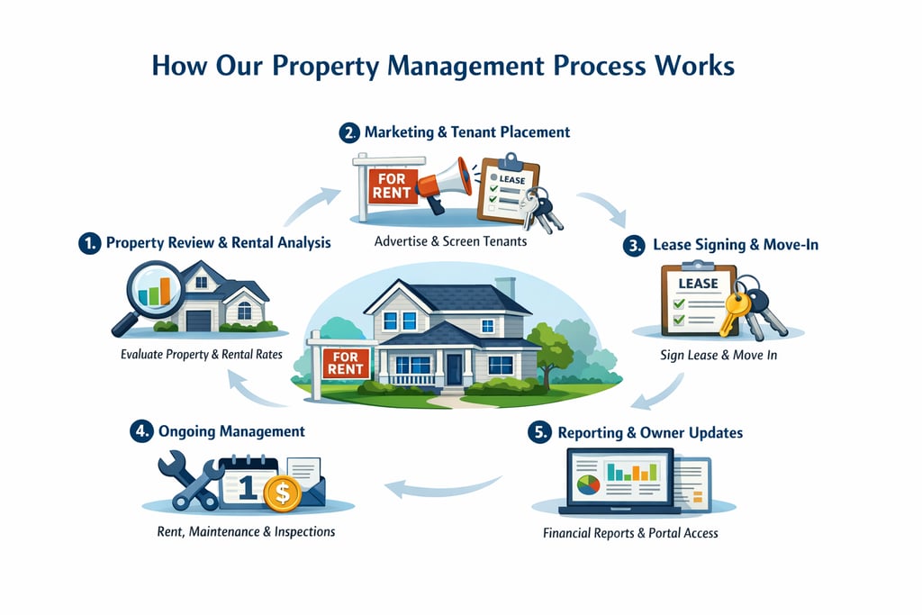 Our management process is designed to make renting your property straightforward and predictable. From marketing your property to ongoing management, we handle each step carefully so your property remains well-maintained and occupied by qualified tenants.